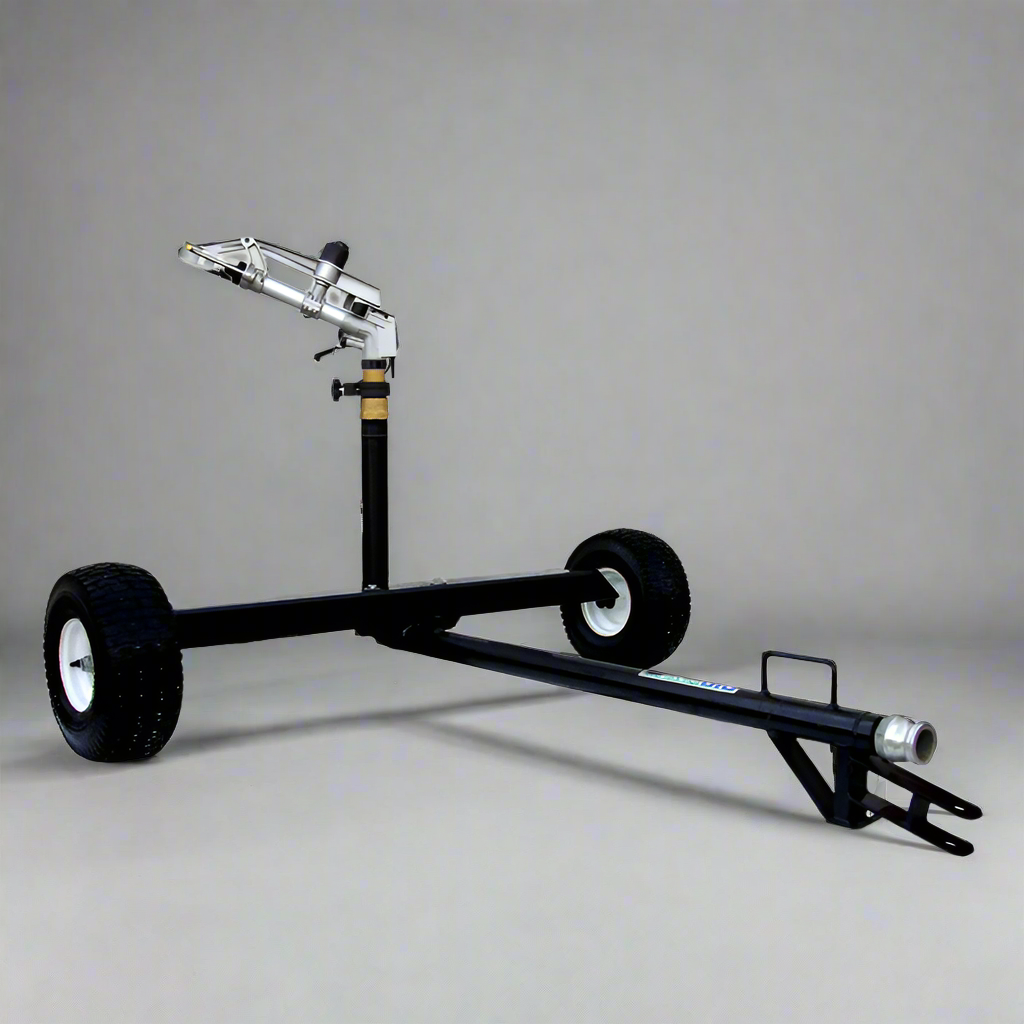 The 2000S Heavy Duty 2-Wheel Sprinkler Cart is constructed with a 2” schedule, 40" steel pipe, heavy 3" square tubing axle, and durable powder coat finish. The 2000S features an ATV tow hitch and large floatation pneumatic tires for moving the cart around farms, pastures, etc. Flow ranges for the 2000S can range from 40 to 200 gallons per minute with water spray coverages up to 250 feet in diameter! The 2000S also comes standard with 2" standard national pipe threads and the large commercial grade Senior Impact Style Sprinkler that may be set to operate in a full or part circle pattern. The 2000S Heavy Duty 2 Wheel Sprinkler Cart is an excellent choice for big irrigation results on small acreages, hobby farms, deer food plots, etc. Select the specifications tab to view full performance chart on this sprinkler.