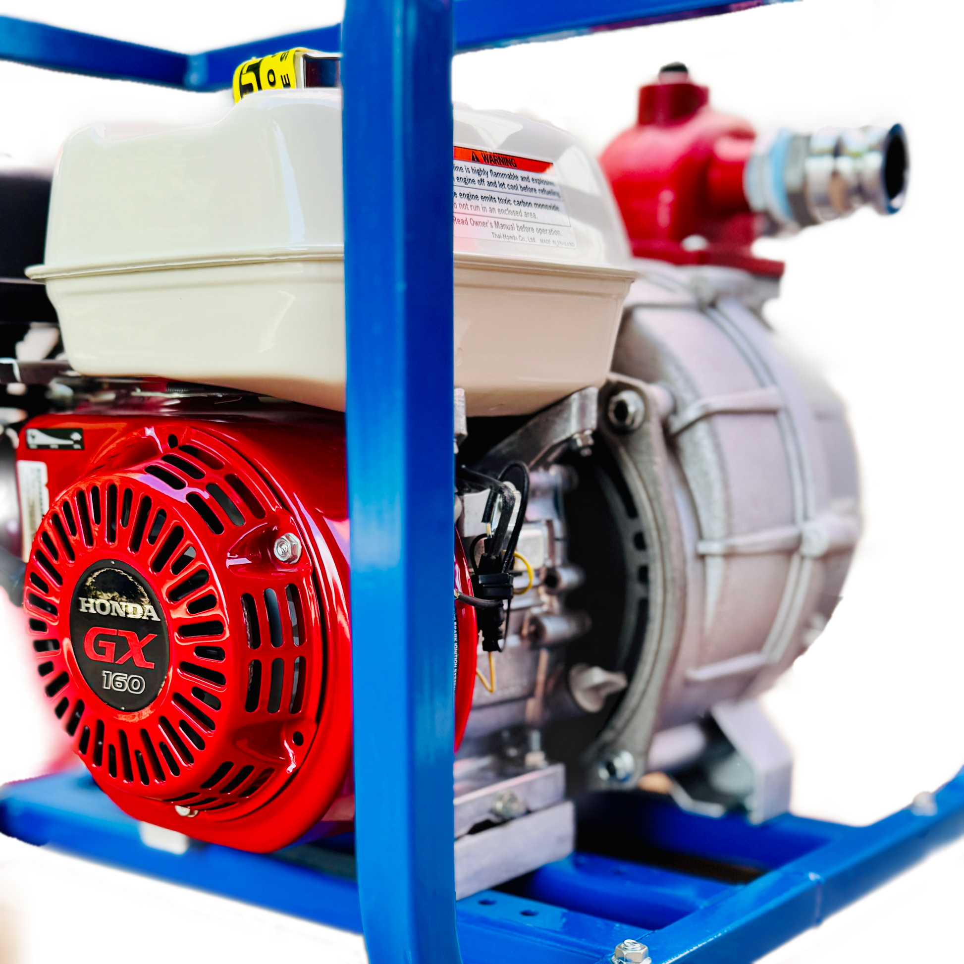 - Pump Information: Honda GX Series Engine w/ Low Oil Shut Down Sensor, IPT Self-Priming High Pressure Cast Aluminum Pump & Impeller, 2" Ports and Silicon-Carbide Mechanical Seal.