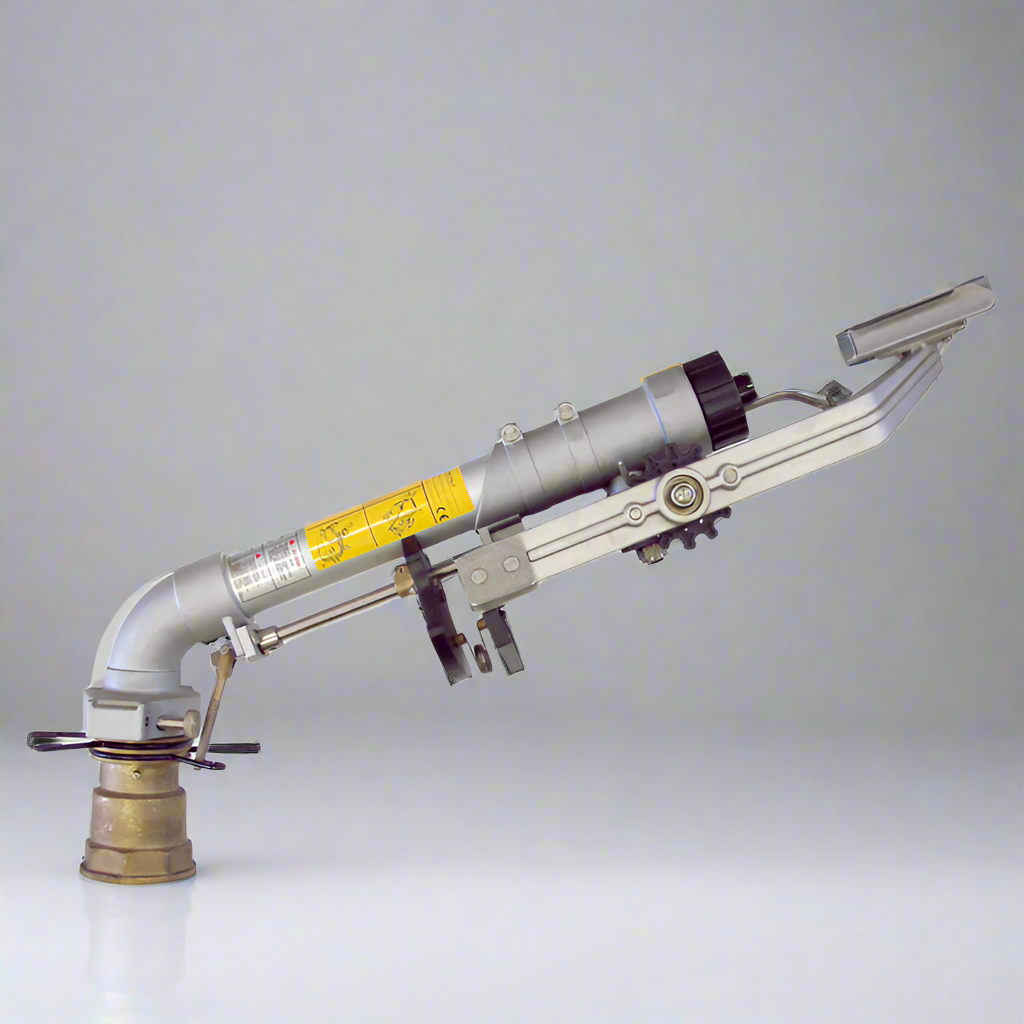 The Royal Irrigation Adjusting Impact Drive Sprinkler is constructed with a heavy cast aluminum body, aluminum drive arm, and brass lower turning union. Features include adjustable stops for full or part circle coverage, an adjustable jet breaker for changes stream pattern and a quick change nozzle setup all supported by a 2" female standard pipe thread connection. Includes a set of nozzles included to accommodate 40 to 200 gallons per minute and coverages up to 316 feet in diameter! The Royal sprinkler features the new style drive arm that operates in an up and down motion instead of the side to side motion reducing vibration on stand pipes and operating on a variety of slopes.