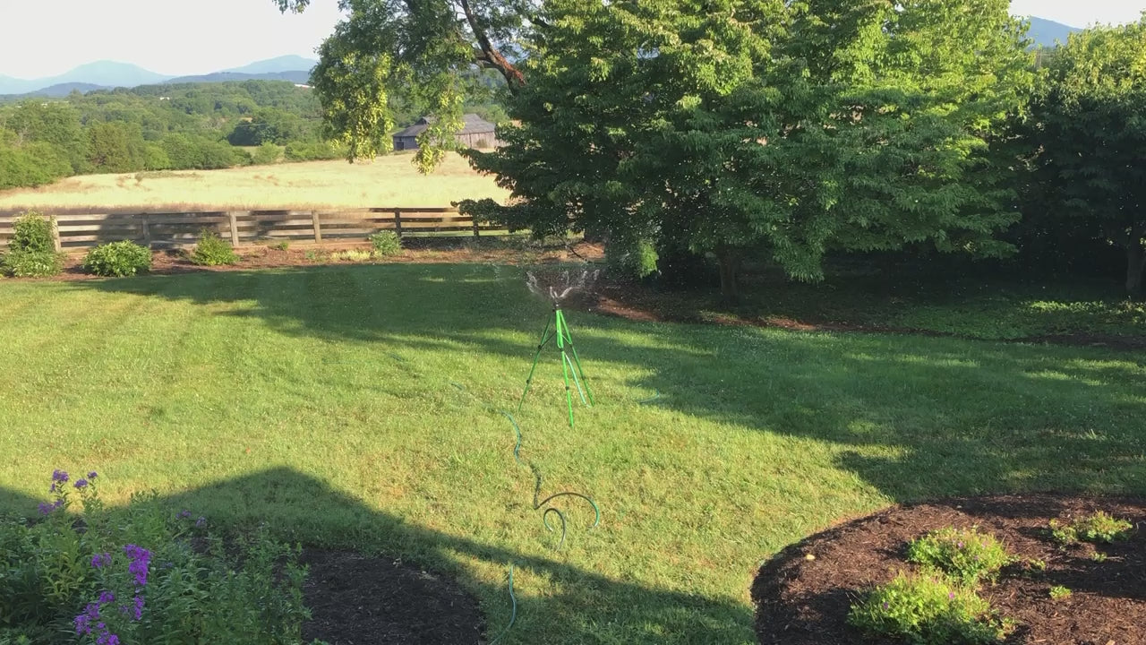 The Xcel Wobbler Sprinkler with Telescoping Tripod is a great product that provides instantaneous coverage over a large area. It distributes "rain" like droplets that resist wind drift and evaporation. The Wobbler Tripod Sprinkler is used extensively in many areas such as lawns, gardens, nurseries, vegetable crops, turf irrigation, and much more! Its unique off-center, rotary-action distributes extremely uniform coverage at low pressures. This product works great for germinating with its minimal impact on soil structure. It is built for strength and durability, using high-impact engineering grade thermoplastics; no metal parts. The Xcel Wobbler Sprinkler with Telescoping Tripod covers up to 50 feet in diameter.